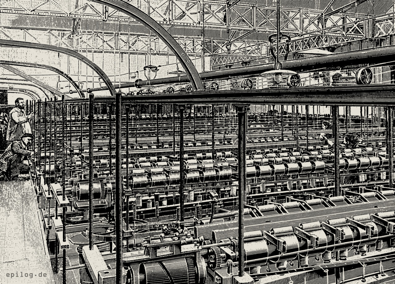 Spinnsaal zur Herstellung künstlicher Seide aus Kollodium.