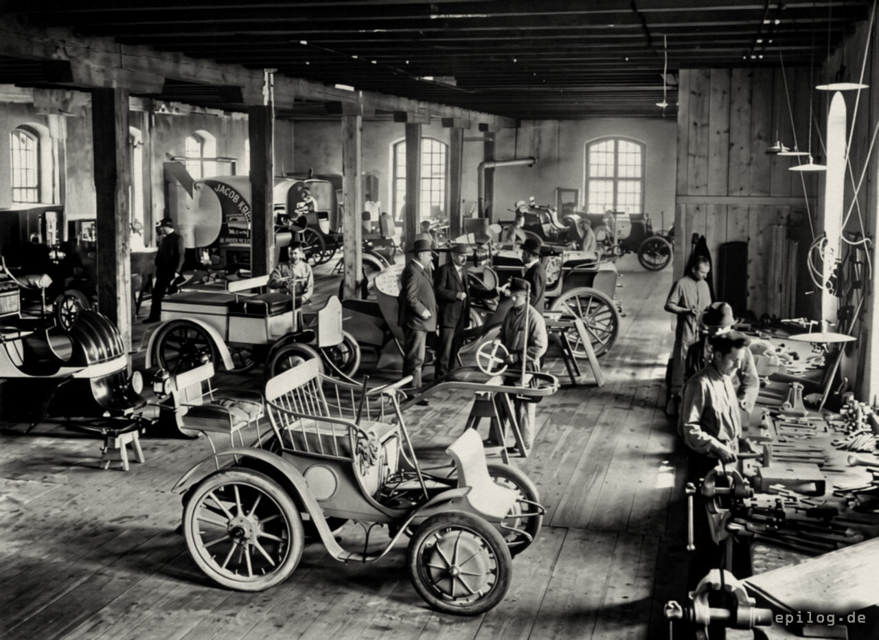 Montierungswerkstätte der k. u. k. Hof-Wagen- und Automobil-Fabrik Jacob Lohner & Co., Wien.