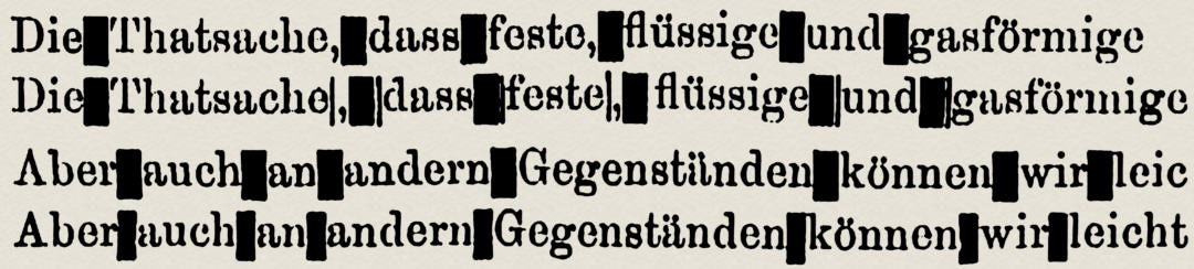 - die Zwischenräume zwischen den einzelnen Wörtern sind möglichst gleichmäßig.
