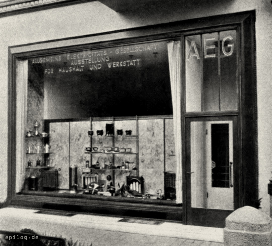 Die neue Ausstellung der AEG für Haushalt und Werkstatt in der Königgrätzer Straße.